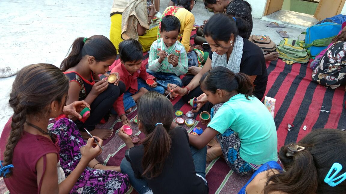 Our team helped the children of kachibasti in making Diyas and bought gifts with the money thus collected.